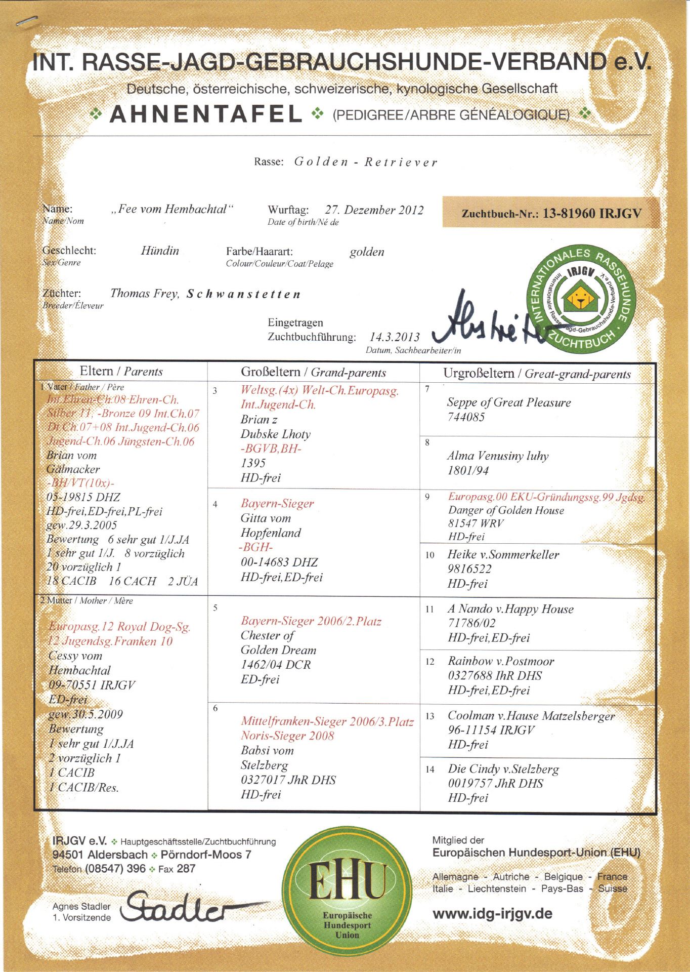 Der folgende Weblog soll der Familie ermöglichen über ihr Admin-Passwort Bilder und Kurztexte auf unserer Homepage einzustellen, um so die weitere Entwicklung unseres "Hembachtalers"zu dokumentieren.Wir die Züchter vom Hembachtal würden uns natürlich sehr freuen wenn wir ab und zu ein aktuelles Bildchen vorfinden würden, um weiterhin am Leben und der Entwicklung unserer Zöglinge teilhaben zu dürfen. (Achtung beim Passwort muß Groß- und Kleinschreibung berücksichtigt werden.)